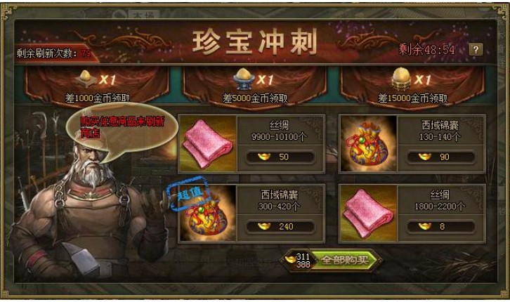 《攻城掠地》9月7日珍宝冲刺圆珍梦,镇守襄阳斩陨铁 活动一:珍宝冲刺,圆你十珍梦! 活动范围:8月18日(含)之前已开所有服 活动时间:9月7日0点至24点 参与条件:已开启丝绸之路的玩家 活动内容:活动期间,在活 ...