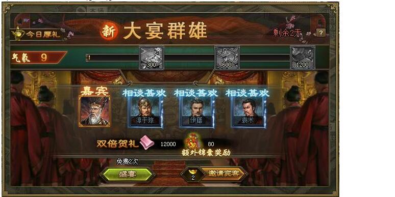 七擒孟获祭先贤,大宴群雄满载归 活动一:大宴群雄,宴请群雄赠豪礼!活动范围:9月3日(含)之前所有服 活动时间:9月23日23:10至9月25日23:10 参与要求:已开启功勋榜的玩家 活动内容:活动期间,玩家通过送发请 ...