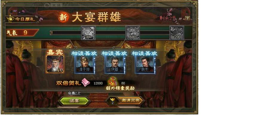 过关斩将获佳酿,大宴群雄满载归 活动一:大宴群雄,宴请群雄赠豪礼!活动范围:9月8日(含)之前所有服 活动时间:9月28日23:10至9月30日23:10 参与要求:已开启功勋榜的玩家 活动内容:活动期间,玩家通过送发请 ...