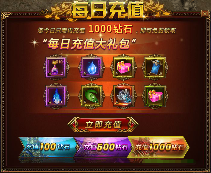 每日充值活动时间:2018.10.19 00:00:00-2018.10.21 23:59:59活动范围:大师200级以上的玩家活动内容:活动期间,每日累计充值分别达到100钻、500钻、1000钻,均可领取丰厚奖励; 充值100钻石可获得:米达伦神格之心 ...
