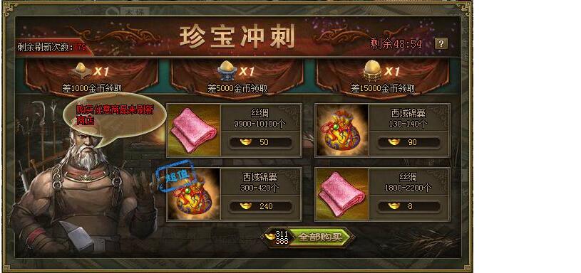 珍宝冲刺圆珍梦,夜袭荆州斩陨铁 活动一:珍宝冲刺,圆你十珍梦! 活动范围:10月3日(含)之前已开所有服 活动时间:10月23日0点至24点 参与条件:已开启丝绸之路的玩家 活动内容:活动期间,在活动界面可以购买丝 ...
