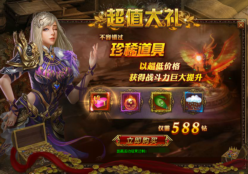 超值大礼 活动时间:2018.11.7 00:00:00-23:59:59 活动范围:大师1级以上的玩家 活动内容:活动期间以超低价格出售珍稀道具,使用可获得战斗力巨大提升!千万不要错过啦!参加活动可获得:1、超值大礼增强礼包打开可 ...