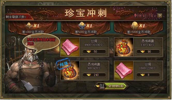 镇守襄阳斩陨铁,珍宝冲刺圆珍梦 活动一:珍宝冲刺,圆你十珍梦! 活动范围:11月17日(含)之前已开所有服 活动时间:11月27日0点至24点 参与条件:已开启丝绸之路的玩家 活动内容:活动期间,在活动界面可以购买丝 ...