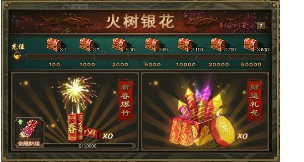 火树银花贺新年、狮王争霸得豪礼 活动一:火树银花,放礼花得金币! 活动范围:12月20日(含)之前已开所有服 活动时间:12月30日0点至1月1日24点 参与要求:已开启世界的玩家 活动内容:活动期间,每次充值均可提升 ...