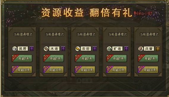 活动范围:3月22日(含)之前所有已开在线服活动时间:3月29日0点至24点活动内容:活动期间,直接开启任意资源区3倍收益(兵营区为2倍)模式,达到以下要求,即可领取同倍收益的资源令奖励。多开多送!a. 直接开启7 ...