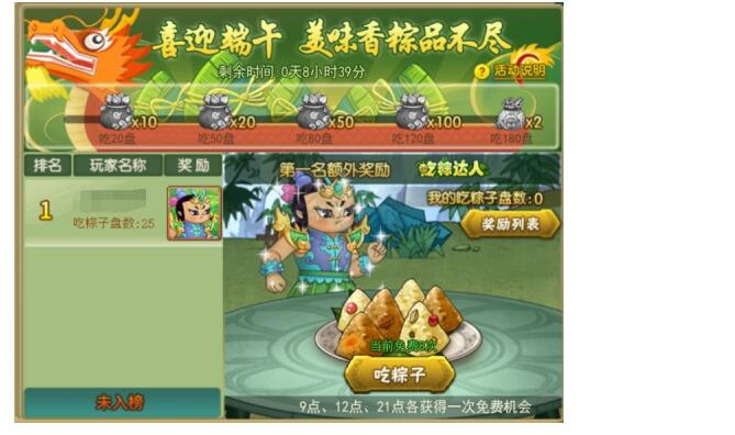 活动一 喜迎端午,美味香粽品不尽活动范围:5月27日(含)之前已开所有服 活动时间:6月7日5:00至6月10日5:00 活动内容:活动期间,品尝粽子即可获得丰厚资源奖励,排名前3更可获得“端午盛装”皮肤 ※ ...