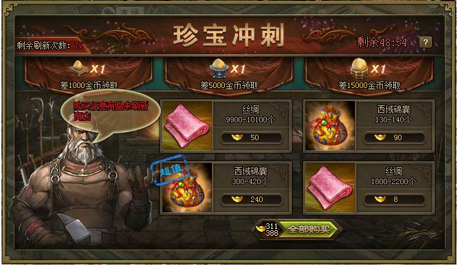 犒赏三军大飞升,长坂突围获佳酿 活动一:珍宝冲刺,圆你十珍梦! 活动范围:6月6日(含)之前已开所有服活动时间:6月16日0点至24点 参与条件:已开启丝绸之路的玩家 活动内容:活动期间,在活动界面可以购买丝绸、 ...
