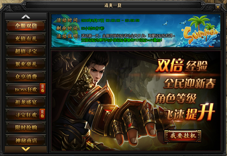 蓝月传奇·清爽一夏活动时间:6月17日00:00:00-6月19日23:59:59
