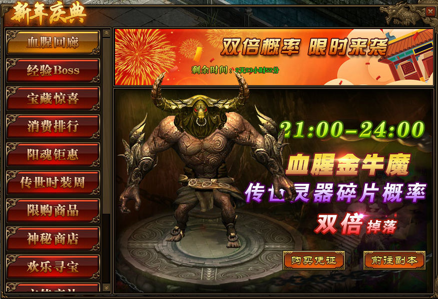《传奇世界》网页版 春暖花开 精彩活动 活动一、血腥回廊活动时间:2月9日-2月11日 活动范围:全服 活动内容: 1.活动期间,玩家参与“多人副本-血腥回廊”,获得“传世灵器碎片”的概率翻倍; PS:具体活动内容请 ...