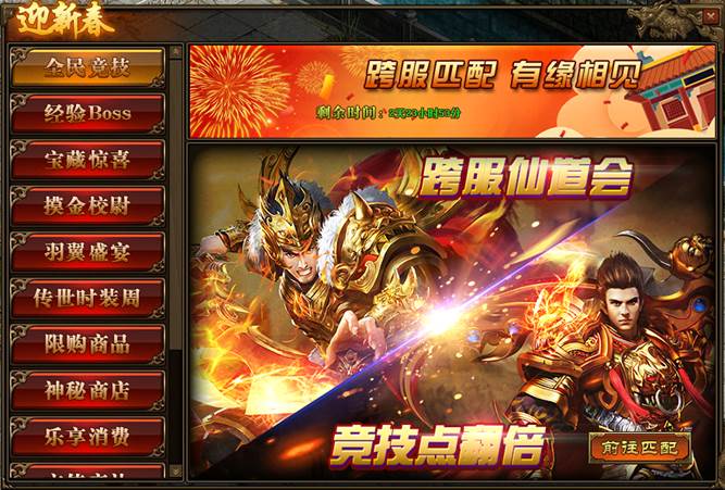 《传奇世界》网页版情人节 精彩活动 活动一、全民竞技 活动时间:2月13日-2月15日活动范围:全服 活动内容:1.活动期间,玩家参与跨服仙道会3V3或5V5匹配,获得“竞技点”翻倍; PS:具体活动内容请以游戏内显示为 ...