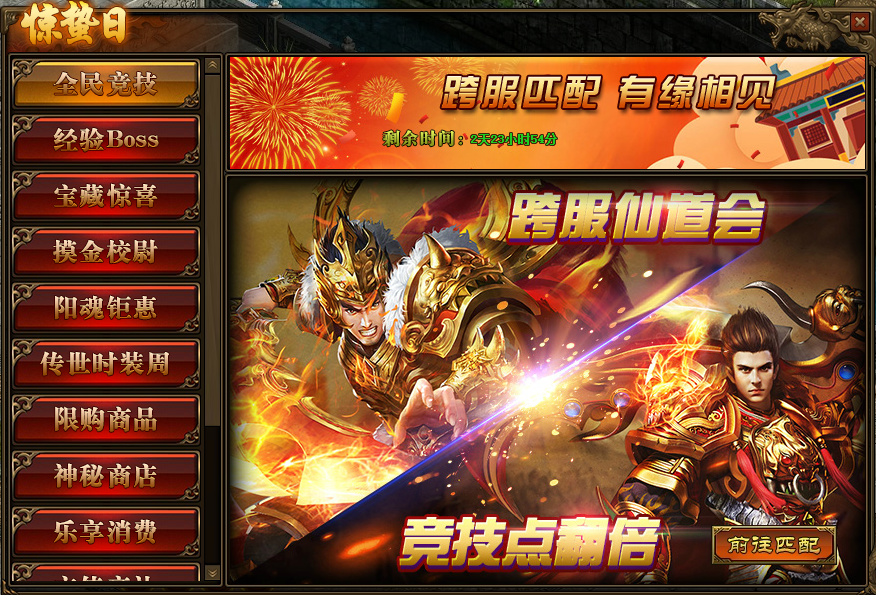 《传奇世界》网页版 惊蛰日 精彩活动 活动一、全民竞技 活动时间:3月5日-3月7日活动范围:全服 活动内容:1.活动期间,玩家参与跨服仙道会3V3或5V5匹配,获得“竞技点”翻倍; ...