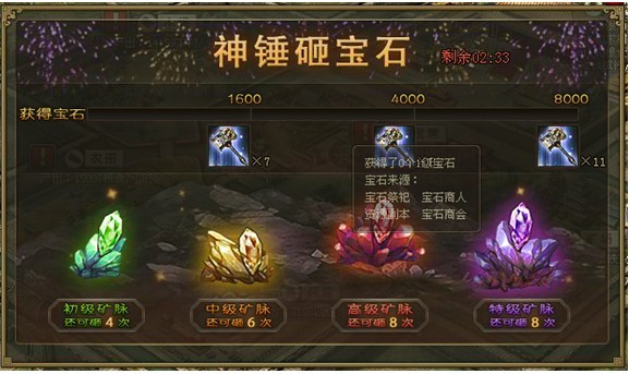 【新版神秘活动二】神锤砸宝石 活动范围:4月3日(含)之前所有已开在线服 参与要求:开启宝石功能活动时间:4月10日0点至4月11日24点活动内容:活动期间,活动将记录通过宝石工坊、祭祀、资源副本、宝石商人获得宝 ...