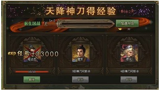 【升级盛宴】天降神刀,斩将经验好礼多! 活动范围:4月5日(含)之前已开所有服活动时间:4月12日0点至4月14日24点活动内容:活动期间,70级(含)以上的玩家通过升级神刀,斩杀每一次神刀升级后出现的NPC将领,即 ...