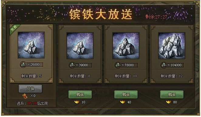 【限时一天】镔铁大放送,等级越高收获越多! 活动范围:4月20日(含)之前所有已开在线服活动时间:4月27日0点至24点活动内容:活动期间,达到以下条件,即可获得大量镔铁,角色等级越高,获得量越多!1. 免费兑换 ...