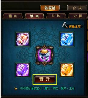 《神曲》 宝石晋升 &神格之魂晋升 系统简介 Ø 通过80级任务【神秘的璀璨精华】,开启宝石晋升系统,任务为镶嵌一颗6级以上宝石。 Ø 打开方式:制造→铁匠铺→镶嵌→晋升→选择【角色】或【英灵】。 (图一) (图二) 图二说明: ①人物装备宝石晋升界面。 ②英灵神格之魂晋升界面。 ③角色界面点击可切换主副职业;英灵界面点击可切换英灵。 晋升小贴士 Ø 每件装备有四个镶嵌栏可以晋升,属性分别为:力量,护甲,体质,智力; Ø 使用鼓舞点/璀璨精华进行培养,鼠标移动到“晋升”按钮上可查看所需要消耗的具体数量; Ø 单件装备最多可获得20个晋升点,晋升点可使用钻石/绑钻进行重置; Ø 装备需镶嵌宝石晋升属性才能生效; Ø 英灵神格继承宝石晋升等级 ; Ø 英灵融合保留晋升等级最高的装备部位,返还相应晋升点。