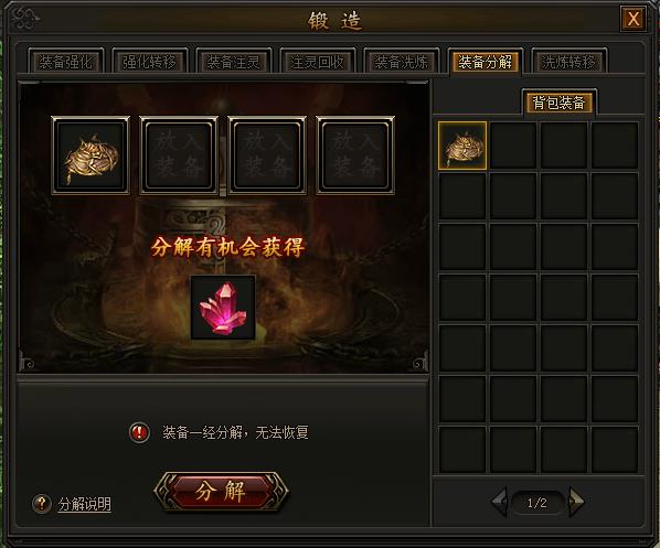 新增魔饰分解功能,分解人阶魔饰,可获得一定数量的赤阳晶石