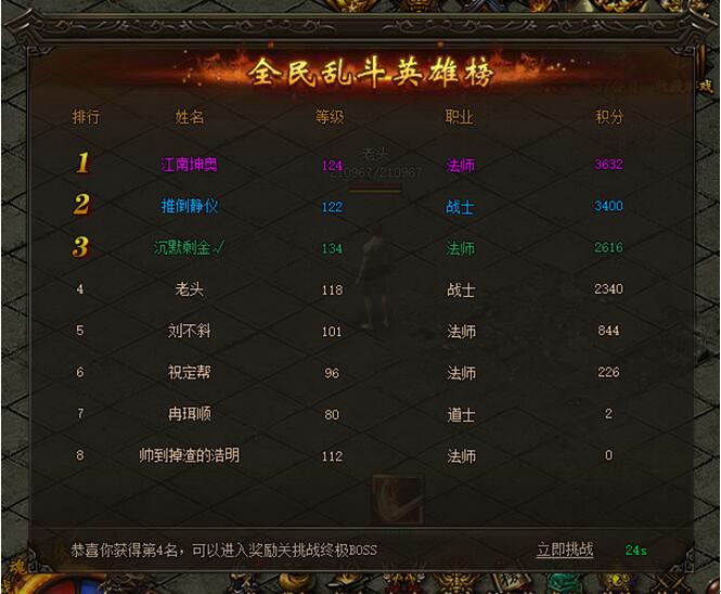 除了个人积分奖励外,个人积分排名前8的玩家还可进入巅峰乱斗挑战终极BOSS。