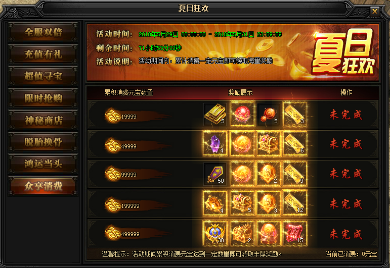 活动说明 : 活动期间内,累积消费一定元宝即可领取海量奖励