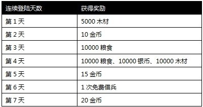 4、新手礼包:金币*50、银币*5000、木材*5000、粮食*5000 [点我领取](因近期领取火爆 3月29日上午10点整开服后 开放领取 先到先得)