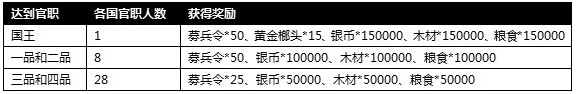 活动内容:截至活动结束,各国四品以上官员(共计17位),均可获得丰厚奖励
