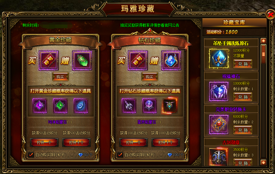 (4)活动内获得的积分可用于兑换珍藏宝库中非常稀有的道具,积分需要在活动时间内使用,活动结束后积分清空。