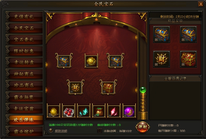 活动期间,每消费一定元宝即可进行一次弹射,每天弹射上限为300次,可获得海量材料奖励,更有机会获得免伤时装一件,心动不如行动!