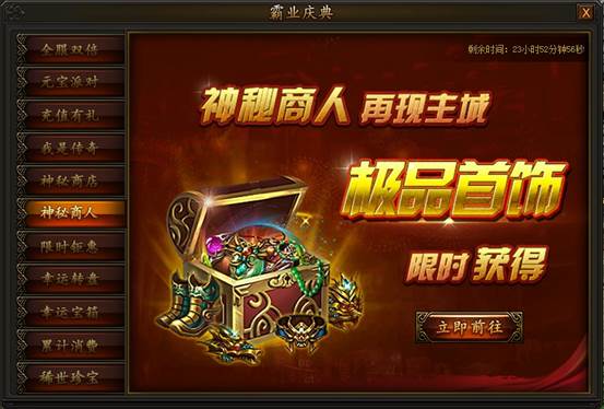 活动当天,神秘商人出现在主城,花费少量元宝即可重铸首饰,重铸有机会大幅提升首饰等级,集齐高阶神装不是梦!