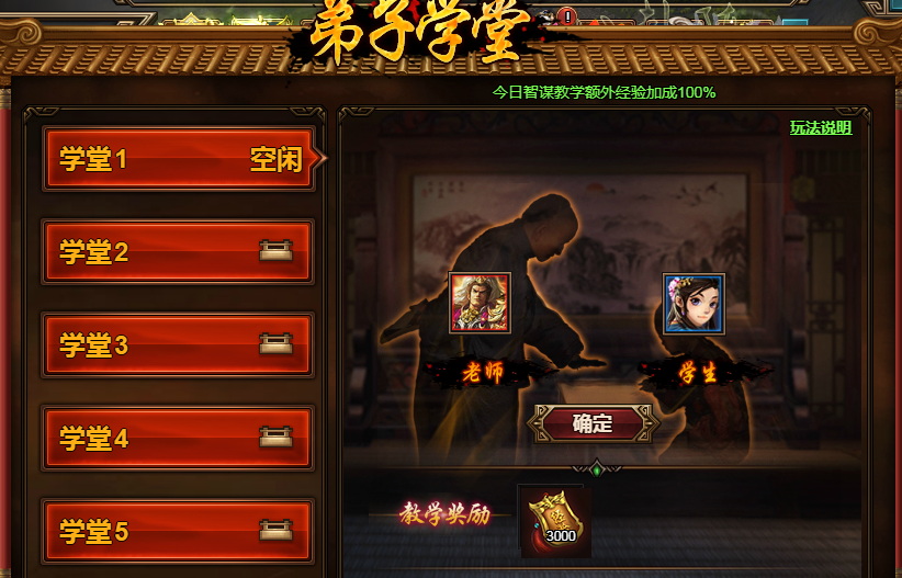 5、在弟子学堂中可对弟子进行授课,提升弟子等级;