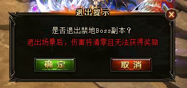 3.  若在boss未被击杀的情况下点击退出场景,则会弹出提示,确定退出则清空该玩家造成的伤害,并且该玩家无法获得击杀boss后的参与奖励&归属奖励