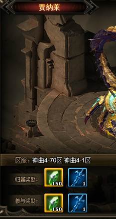 下方归属奖励&参与奖励中会展示当前选择的boss可能掉落的装备类型以及掉落的波塞冬宝石数量,同时会展示当前禁地boss数据互通的区服(即可以在禁地boss中与其他区服玩家进行竞争)