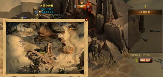 2.  在下方会展示挑战该boss推荐达到的战甲值,而点击副本地图按钮,打开副本地图即可看到boss刷新点