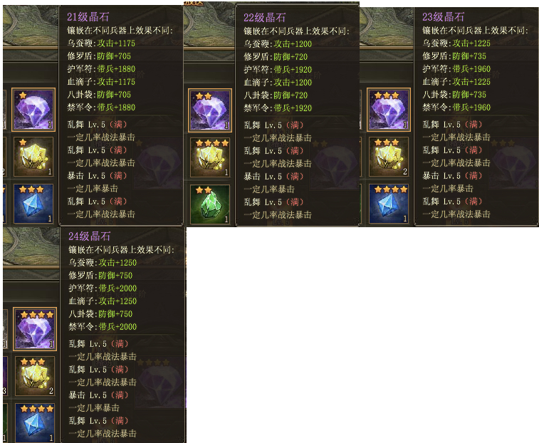 16级晶石颜色跟15级一样为红宝石,但是值得吐槽的是17-20级晶石颜色为黄色,跟9-12级宝石的颜色几乎一样,这个雷同应该不属于巧合了